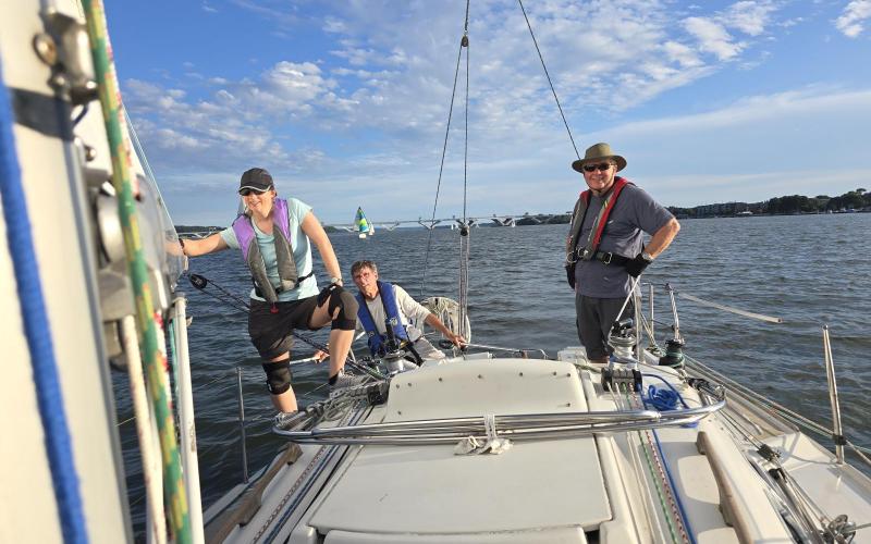 The fourth annual ODBC Regatta. More breeze than previous years, 5 to 8 knots. Just Sara, Paul, myself sailing nonspin. Beat everyone to the windward mark in all three races, line honors in two races and, second place overall. Anne Marie corrected ahead of us and took first.
