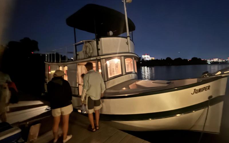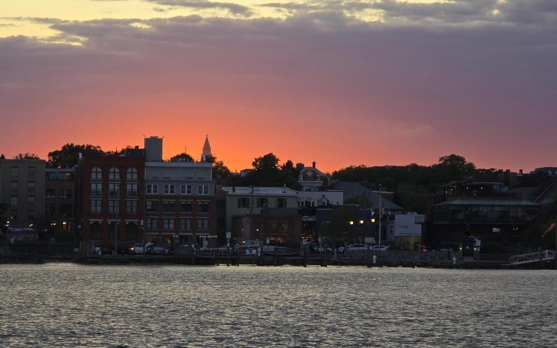 Jake invited Paul and Maggie, Chris and Becca, Brian, Sara, Dana and me for a late afternoon boat ride on Juniper, his 37' Biloxi Trawler. Perfect weather. We were on the water for about four hours. Went up and back along the DC waterfront, then turned east and went up the Anacostia past the Frederick Douglas Bridge, past the Nats Stadium and the repurposed Navy Yard. A cloudless sunset kept us company on the return to the slip.