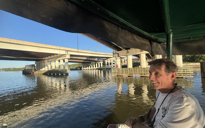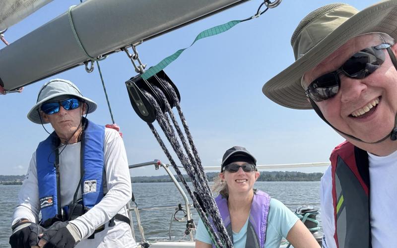 Dana and I spent a few relaxing hours on the river. Sunny, low 80s, northerly breeze sometimes gusting to 12 knots. Beautiful weather.