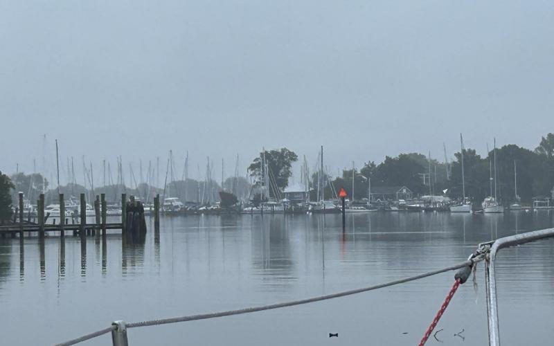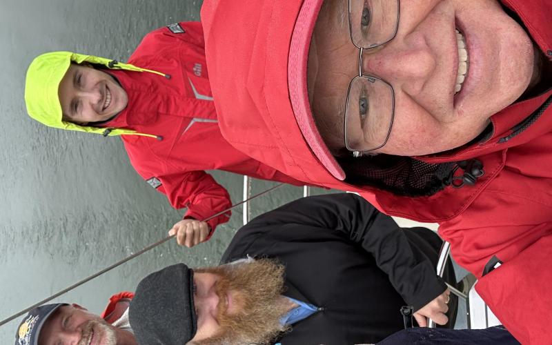 On a wet Wednesday evening, four of us ventured out to test out our "new" staysail. I think Steve is going to call the new sail "Dory."