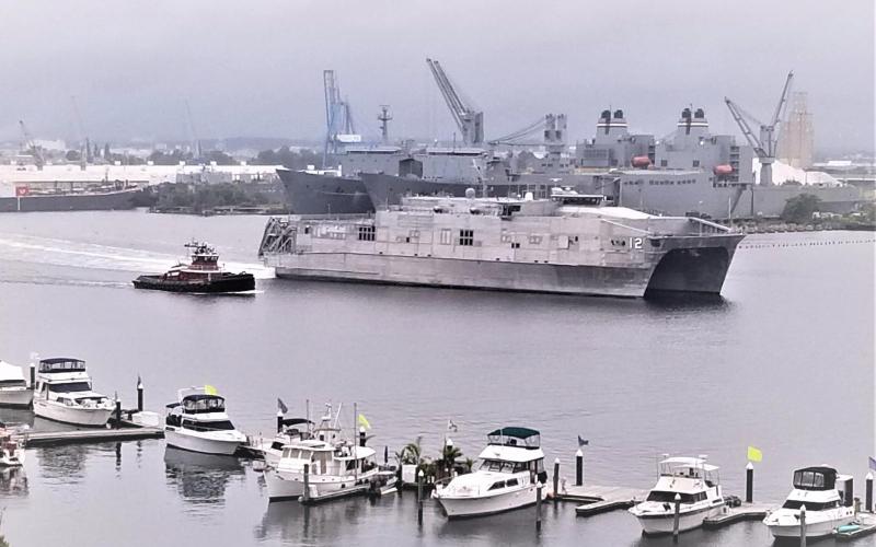 Motored around the Inner Harbor to check out the ships from the water. Also got a good photo of the USNS Newport from the apartment.