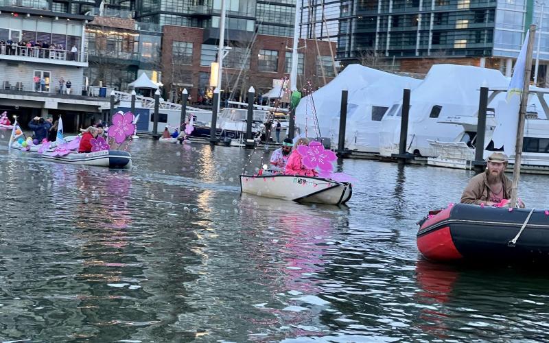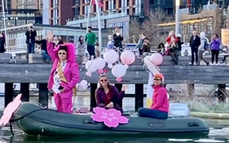 The Port of Washington Yacht Club "pinked our dinks" for the Wharf Bloomaroo celebration during the National Cherry Blossom festivities