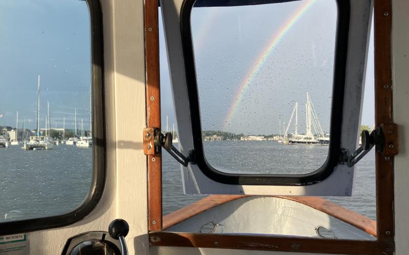 Rain showers during my 5:30 tour on Miss Anne brought double rainbows!