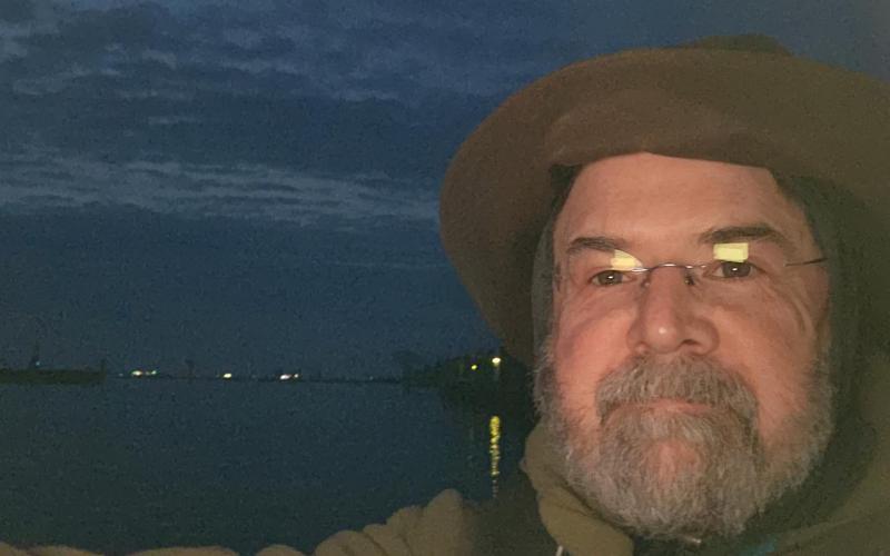 Wind from the south this morning. Completely opposite of Tuesday. Osprey and gulls overhead and a few ducks. No boats besides the pilot boat. A big cloud bank to the East muted the sunrise.
