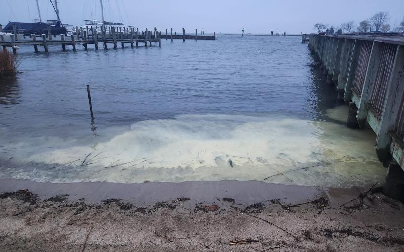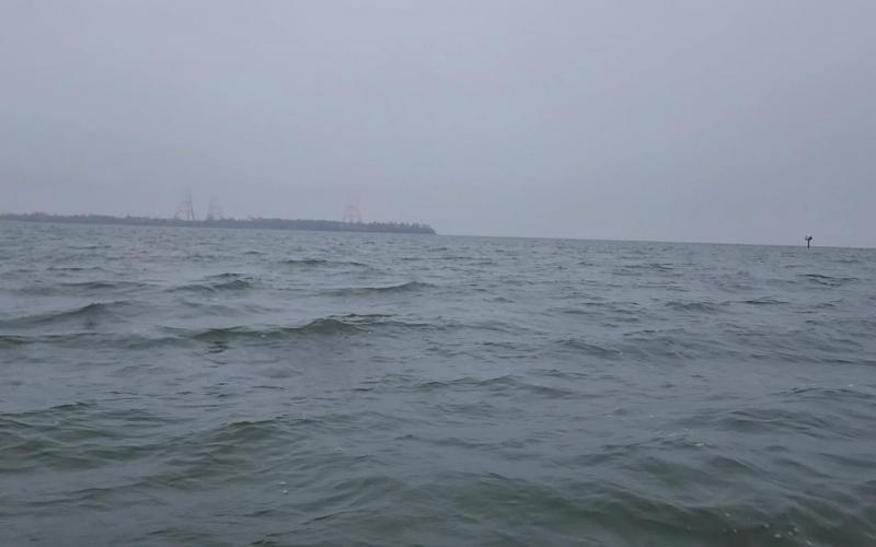 Wind was honking out of n by nw pushing the ebb tide into oh, modest waves. Saw one seagull and one of the greenbury point marker ospreys.