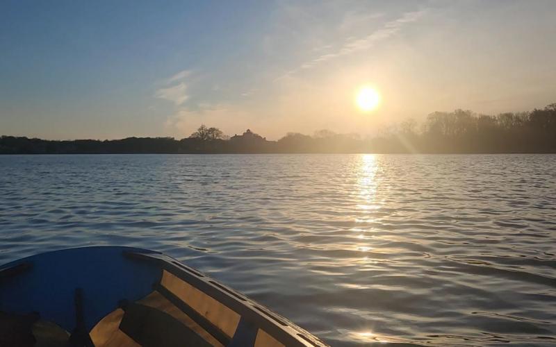 Lovely calm morning although I should have brought sunglasses.i had to row the last leg staring into the sunrise.