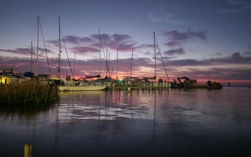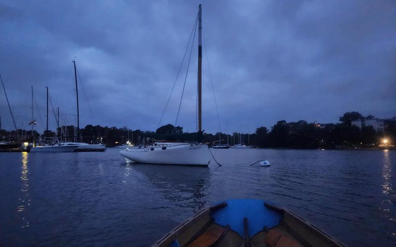 That mint green ketch in the anchorage off Horn Point has six or a dozen crows on the mainmast spreaders having a very heated exchange at 6:30 in the morning. Must have been fun to wake up to.