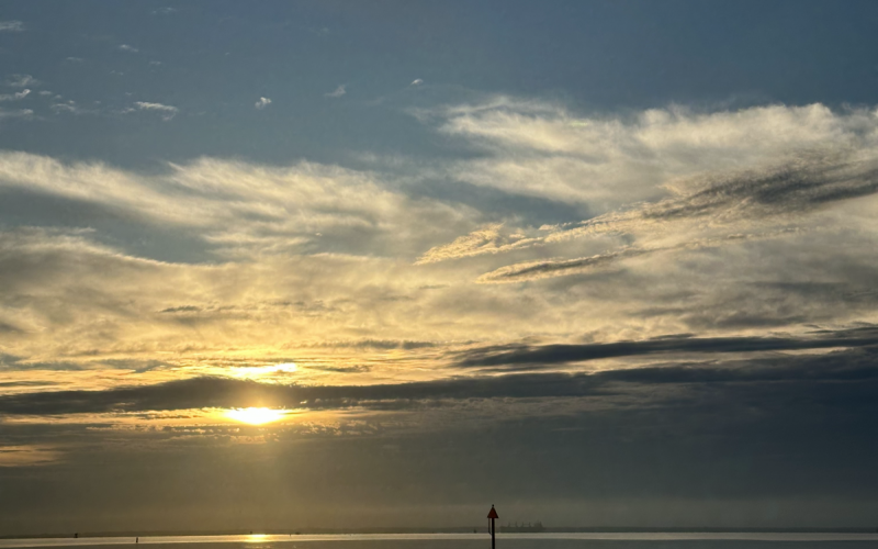 Another lovely morning. A low cloud bank starting out but the sun climbed as it does and I rowed back from #4in the sunlight.
