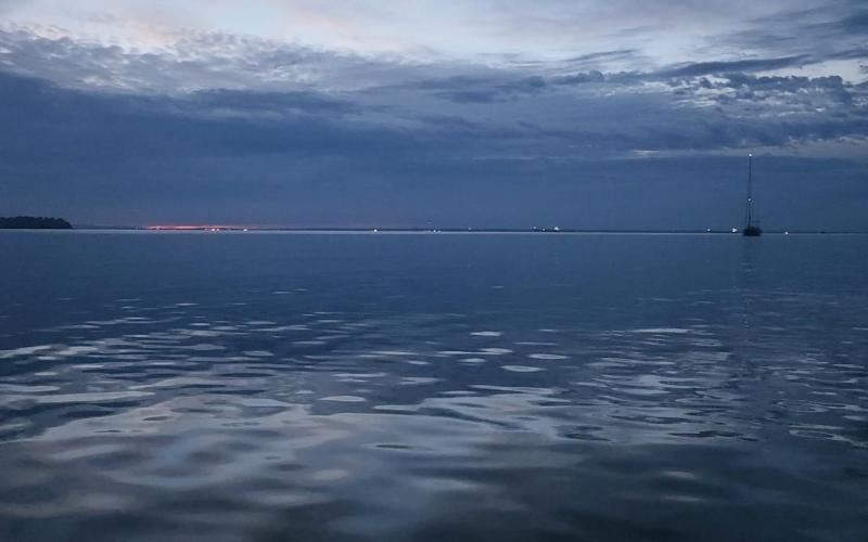 Tall waves but not too much wind. The southward fleet is starting to gather int the Horn Point anchorage.