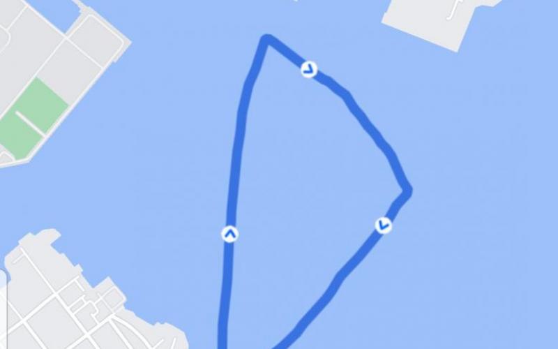 Very cool, breezy, and slightly shorter than normal. Somebody was fooling with the signal tones on the YPs, making random toots. Also the construction crew over at the YP basin has a spotlight shining straight out from the entryway. So with weird audible signals and no way so actually see if a YP was about to leave, I decided to turn early and stay out of their usual path across the Severn to the Academy.