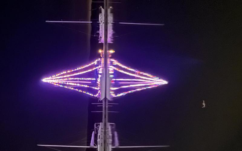 On board to take down Christmas lights from mast. People really enjoyed these this season.