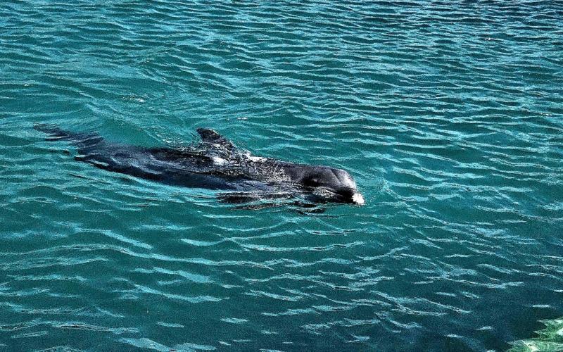 Took visiting friends John and Lauren out on the Kiwi Kruzer for a ride and lunch on the river. Went into Monroa Bay where it was a bit less windy. Afterwards we boated up the beach toward the Riverboat and pointed out the sights. Very nice day. Mid-70s. Nice day on the water