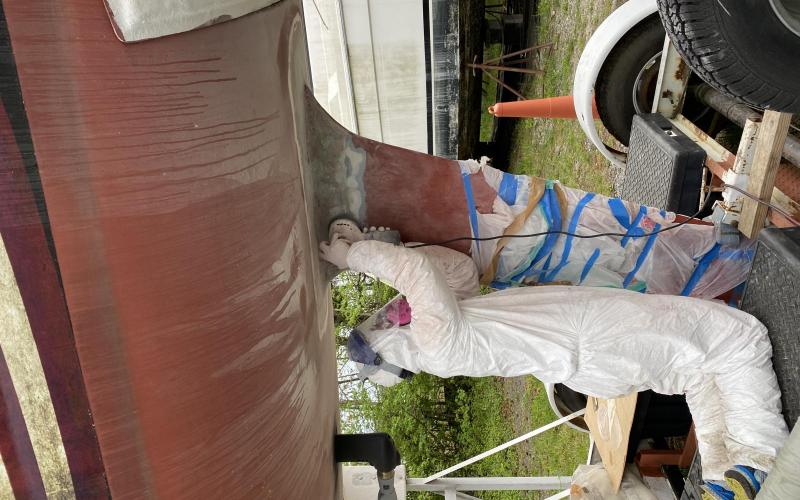 Finished Saildrive and prop paint. Installed anodes. Sanded keel for fairing.