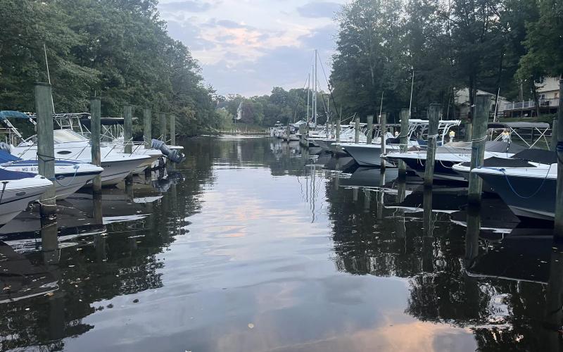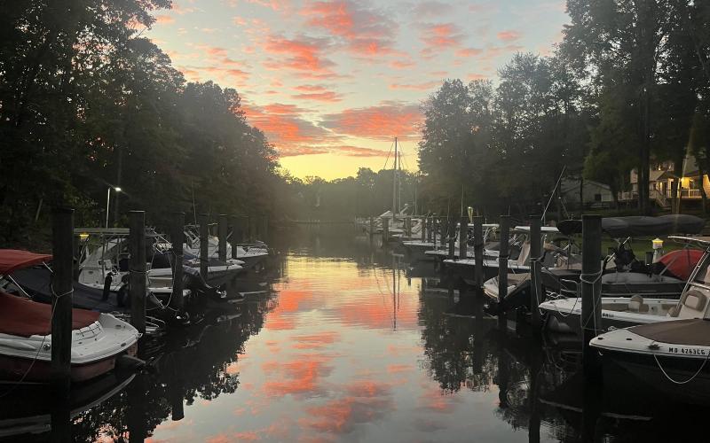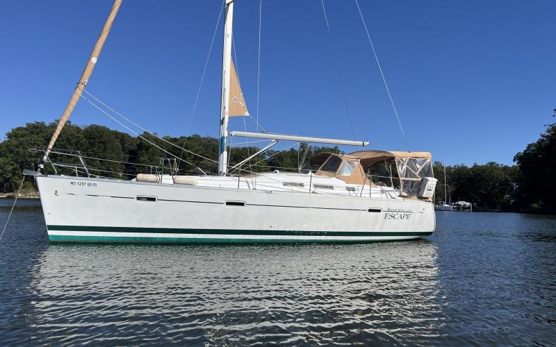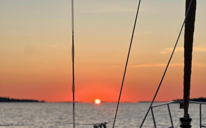 Took Escspe out for an overnight cruise to Broad Creek. Left dock at 11:30 am. 74F, sunny, with wind at 7 mph from the S. Dropped anchor in Broad Creek at 12:25pm. Explored Broad creek by dinghy. 2 other sailboats joined us in the coverat around 4:30pm.