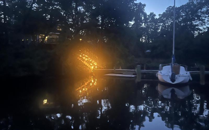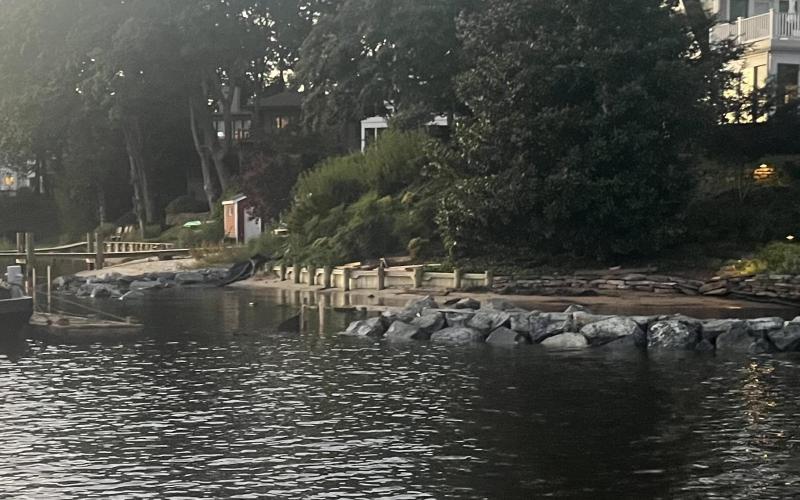 Took the paddle board out for a sunset paddle, Checked out the progress of rip rap deployment at the point where the creek meets the Magothy. 75F, clear, with wind at 4 mph from the SSW at time of launch (6:50pm).