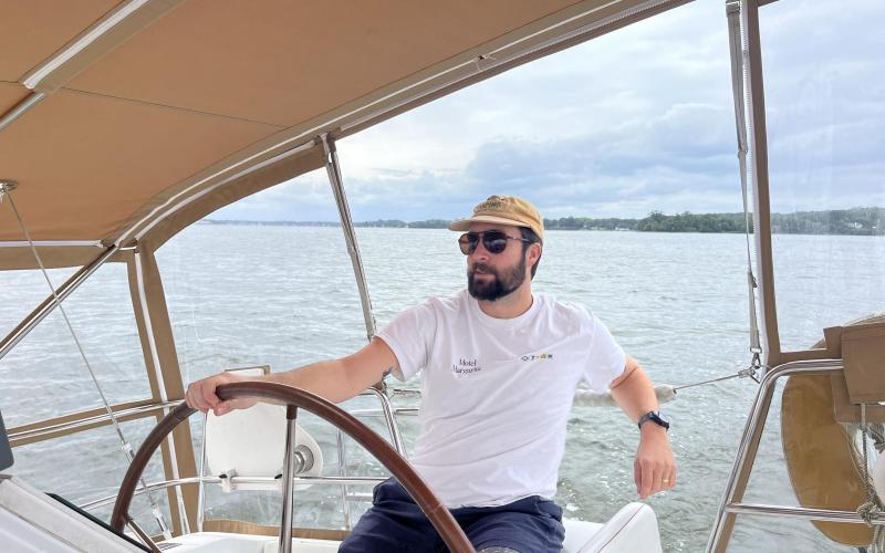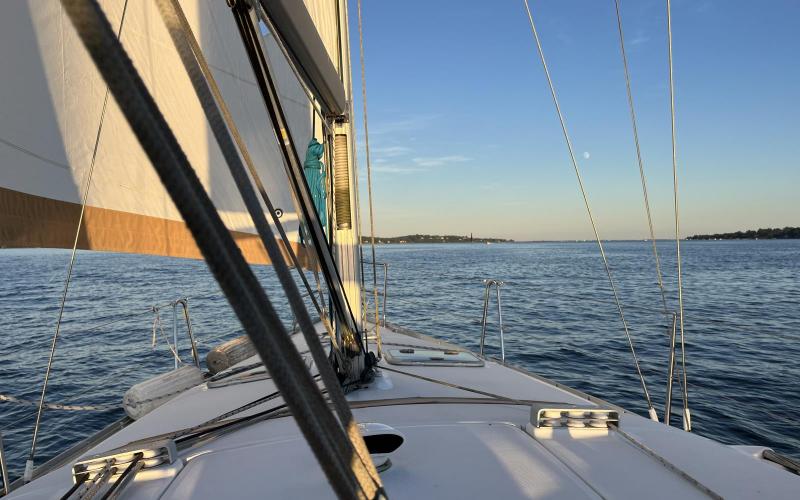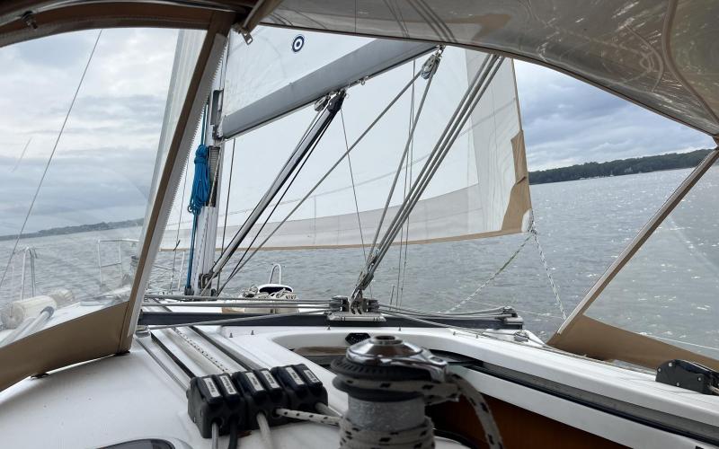 Took Escape out for an afternoon sail with my son. Nice steady breeze as we headed over to Dobbins to anchor for a late afternoon lunch. 72F, cloudy with wind at 7 mph from the E at time of departure (12:45 pm).