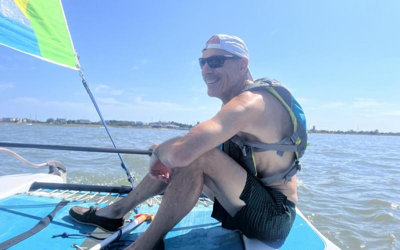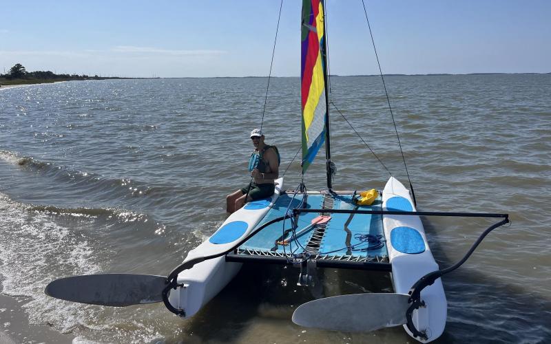 Took the Hobie Wave out on Rehoboth bay. Gave my friend the tiller and we enjoyed a nice steady breeze (78F, sunny, with wind at 9mph from the SSW at time of launch (11:25am). Win picked up after noon to approx. 13. Just a great day - great temps.