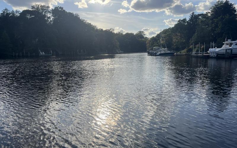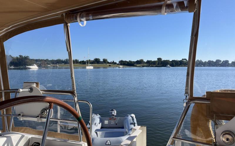 10/4/25 - Took Escape out for an overnight. 76 F, sunny, 5mph built to 10 from SSE but died after passing Dobbins. Anchored at 6:55 pm in Eagles Cove. 9 other boats in cove.