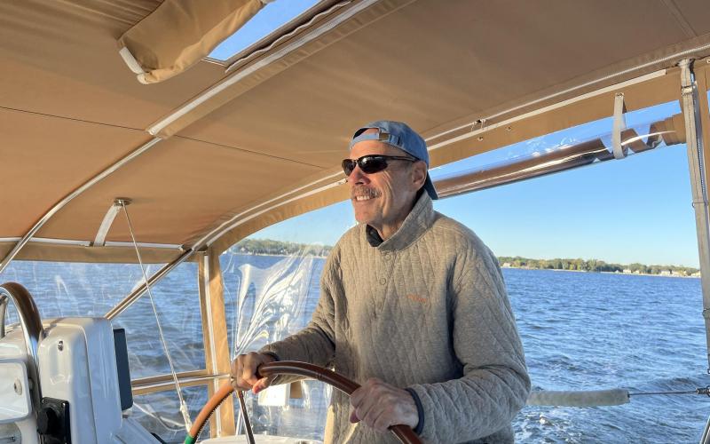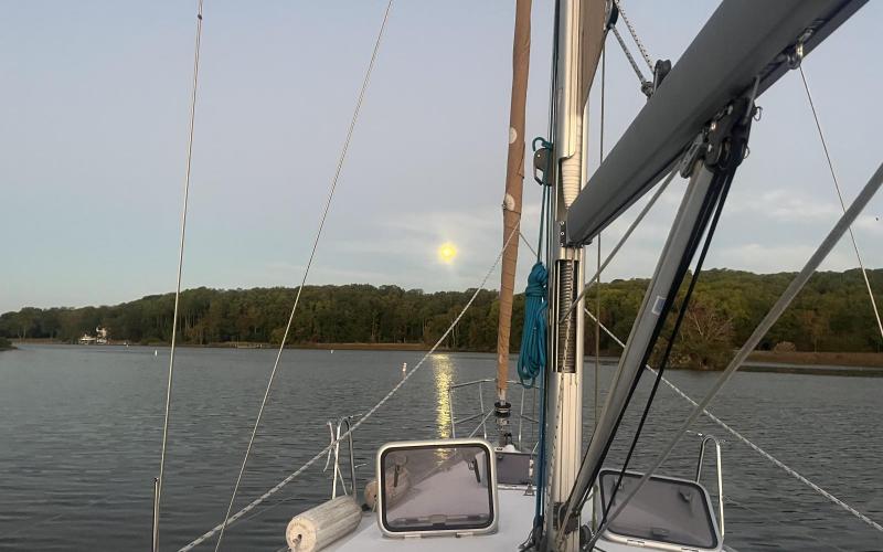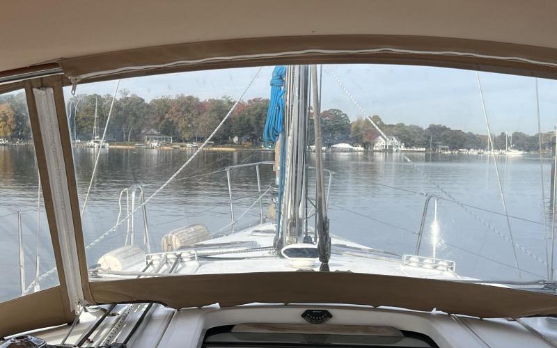 10/7 - Up at 6:45am. Anchor up at 9:10 am. 69F, sunny, wind at. 7 mph from the SWW, built to 14 once out of Broad creek. Back to dock at 10:00 am