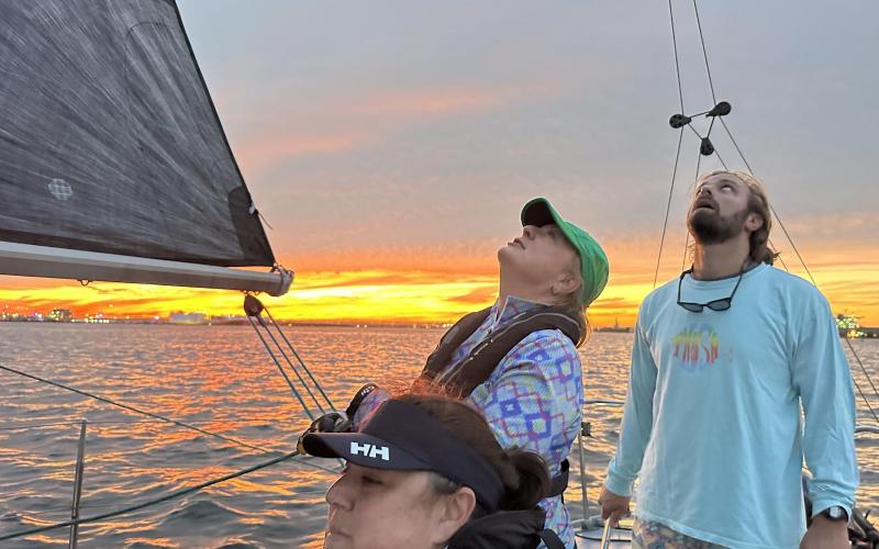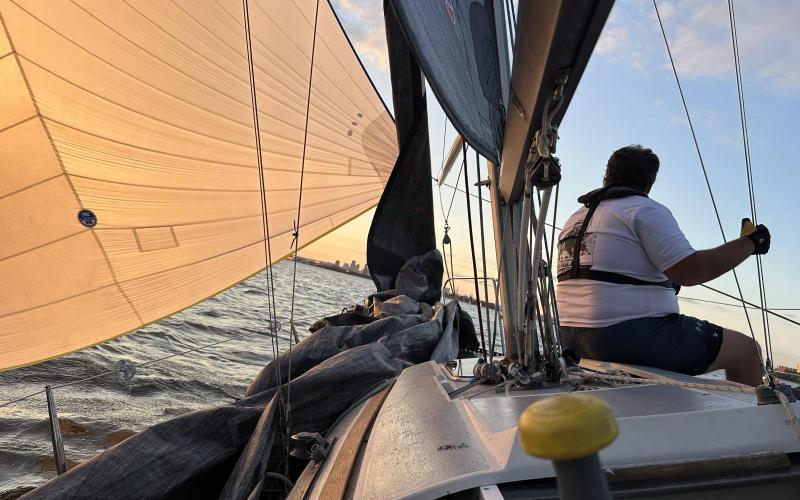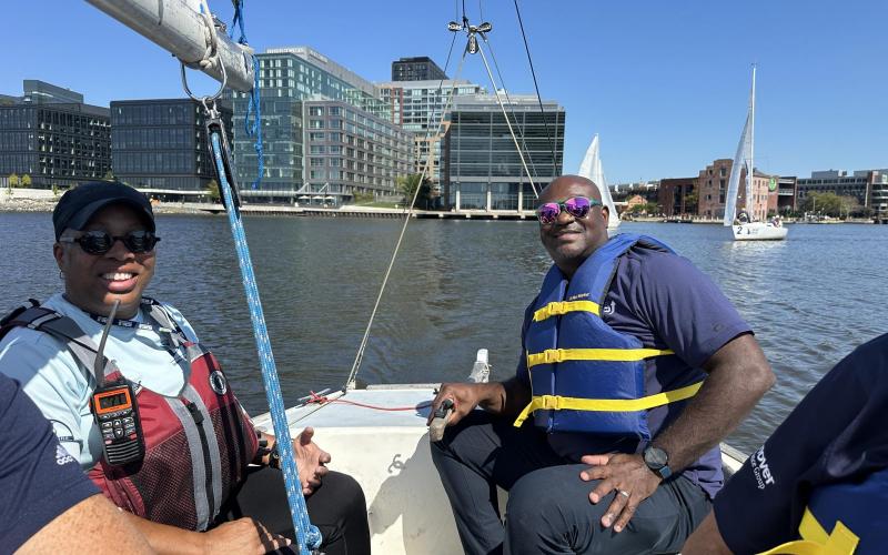 Fun coaching participants in today's Regatta racing in the Inner Harbor.
