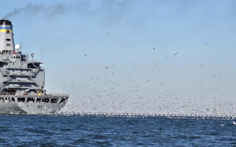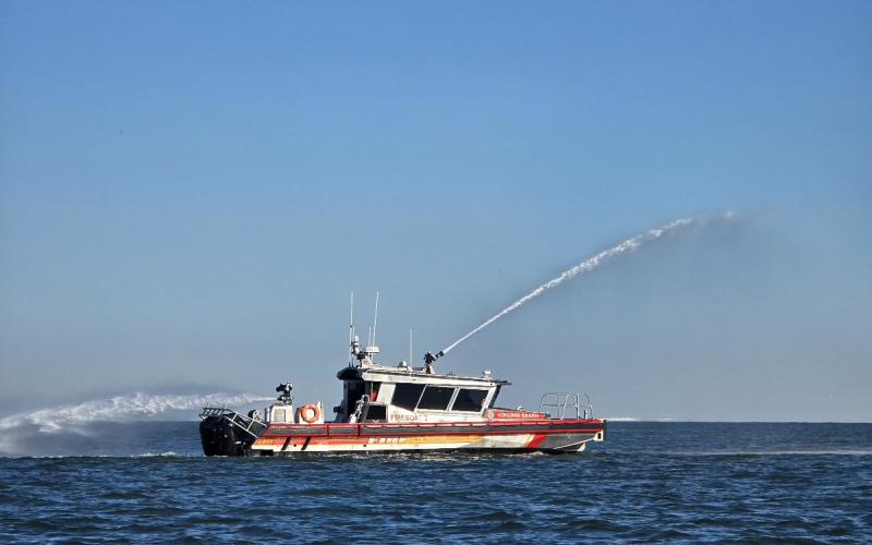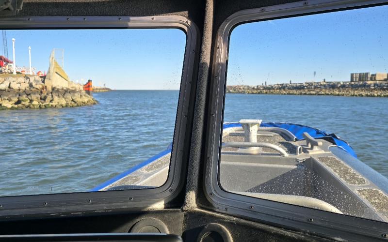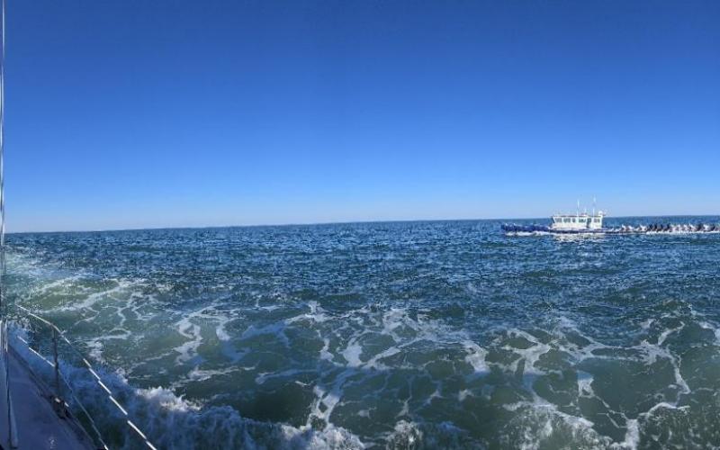 Long day on the water. Security zone as the dredge was broken down and then escort of the giant snake around the Cape.