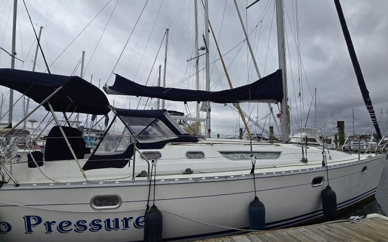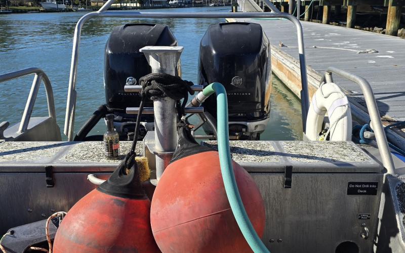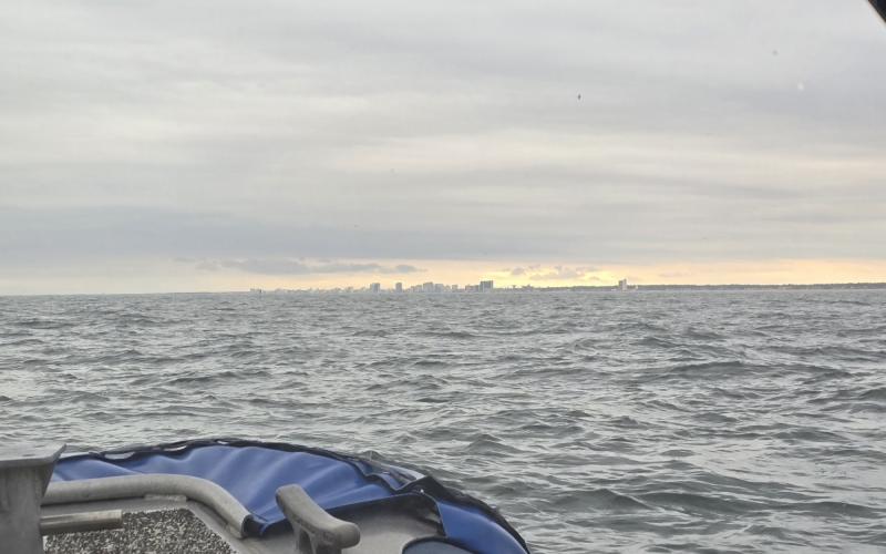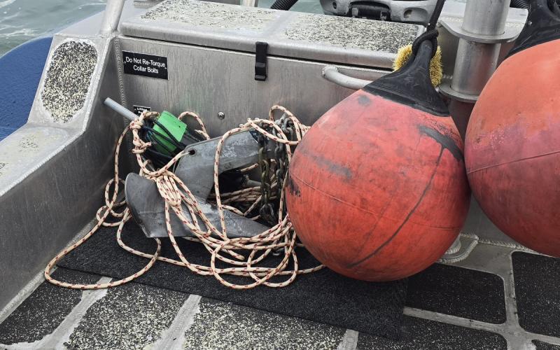 Had to get underway early before the weather set in. Gale force winds gonna whip the bay up into a maelstrom. Went off shore to recover some ground tackle from last week's sailboat event.