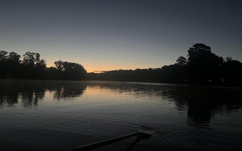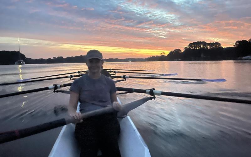 As we went out past Easton Point in total darkness, we say a meteor streak down to the East above the Eastern horizon. It was cold - 45 degrees, so we rowed pretty hard to get warm.