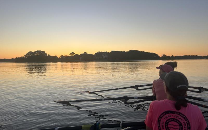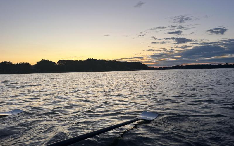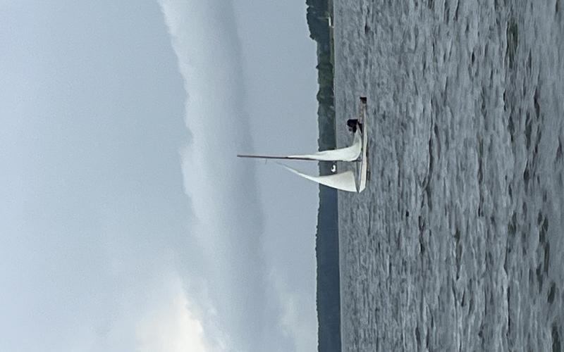 At dawn, I rowed stroke seat in the Vespoli VIII. In the afternoon, I crewed for Nicholas on Sea Hawk in a light air breeze all the way to Long Point mark and back.