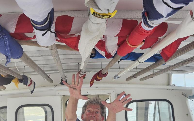 Then I went and did RC for the small boat race. The wind was very light. We shortened the course when it dropped below 5 kts. Randy and Chip were teaching me about clouds, how they can indicate wind, how to locate the clouds to be able to better start telling how far away they are (radar), and learned a lot about their awesome sailing histories! Next time I do RC I need to wear grimier clothes bc the anchor is so muddy haha