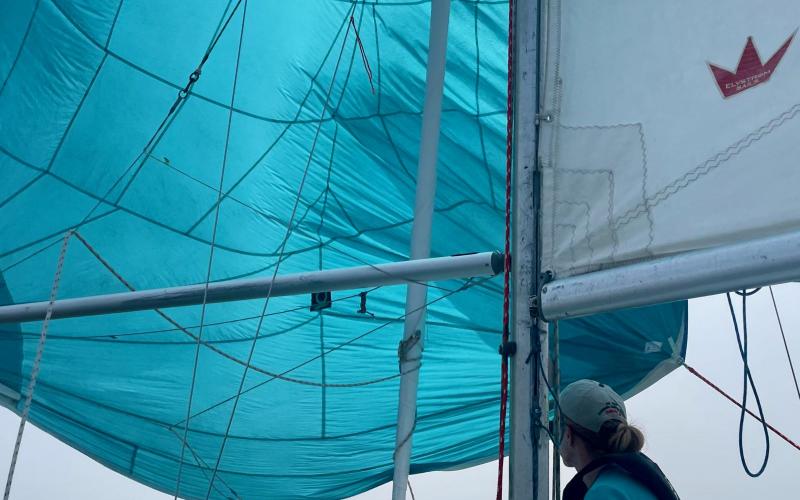 Sailing with the Annapolis Sailing School on the Keelboat Club Chinook to practice for the CRAB Cup Regatta.