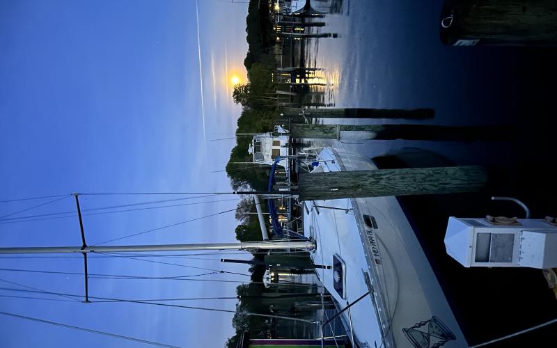 Submitted by Adam Cowan on Wed, 04/24/2024 - 12:30 Trip dates: Tuesday, April 23, 2024Trip length: 1 dayType of watercraft: Sail Full moon rise at bay boat works Me and dad First day in the water, fine tuning the engine from the winter. Installing new headsail