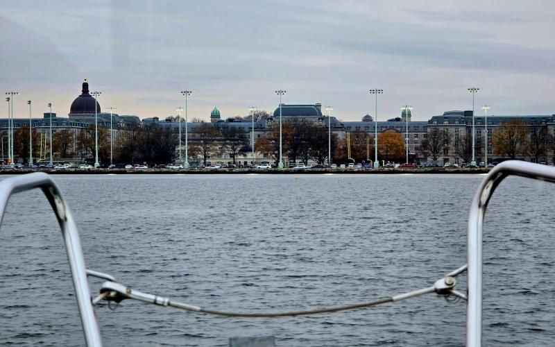 DTA Christmas tree as seen from the water! And then my phone shut down, so that's a wrap, even though we were out a lot longer....