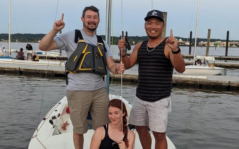 - Me and new crew 'placed' (in quotation marks because we don't track it) 1st overall. Had a great port-side start start and left everyone in the dust in the first heat. Won by half a lap! On the 2nd heat, more people followed my strategy and I got lost in the pack. But I managed to get on a course that required less tacks. Using a lot of offensive strategies, we managed to finish in the top 3. We did all this on the second slowest boat in the fleet!