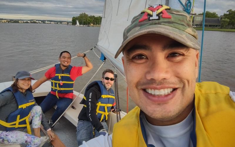 3rd day in a row of marina ice cream and tutoring in a Flying Scot. Ran Jerry through very tight figure-8 drills for practice. We almost didn't get a boat because it was Wednesday night racing for SCOW. Fortunately, they cancelled and we got to sail!