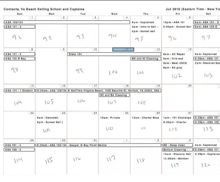 Lant, who holds a 100-ton near coastal USCG license and is an ASA instructor, writes, “Most of this time was spent teaching for SailTime Virginia Beach teaching ASA courses.”