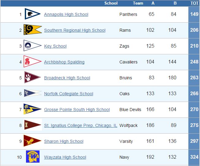 Also in Annapolis this past weekend, the first Phoebe Corckran King Memorial Regatta took place out of Severn Sailing Association and Annapolis Yacht Club. Find the story about this regatta in the July issue of SpinSheet. Here's a photo below from Jill Bennett, followed by the top ten scores