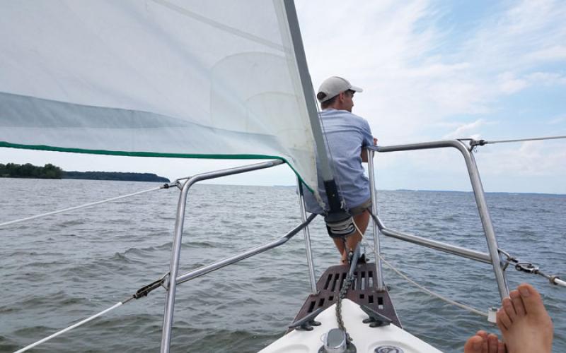 Though plagued by an electrical issue the next day, we tied a hammock from the whisker pole and used the autohelm’s remote to dodge crab pots as we sailed to the Rhode River. After anchoring near Big Island, we cooled off from the 117-degree Fahrenheit heat index by jumping in for a swim. A nettle sting initiated this Great Lakes sailor to the full Chesapeake experience.