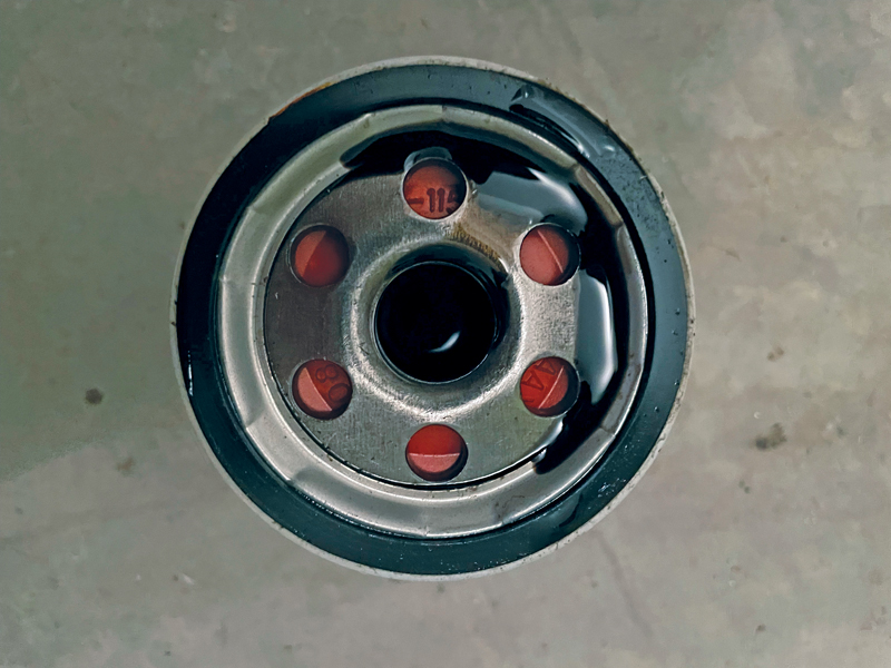 To install the new filter, pour some of your new oil into it (as long as it won’t spill out while installing) and use your fingers to rub some new oil onto the gasket. This will improve the seal. Screw the new filter on until the gasket makes full contact, and add another three-quarter turn. It doesn’t need to be overly tight.