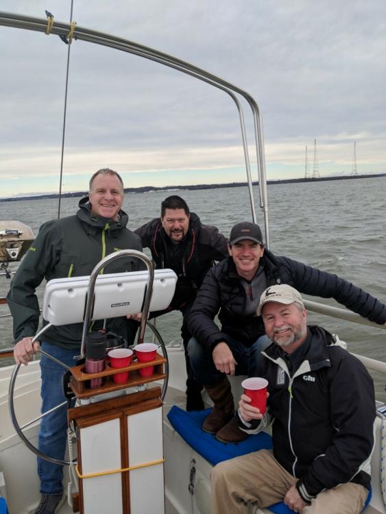 Many Bay sailors spent time on the water January 1, inlcuding multiple members of team SpinSheet. Warm air temperatures were alluring, and a strong breeze kept things exciting. SpinSheet editor Molly Winans was aboard a friend's sturdy ocean-going Nordic 34, double reefed and sailing with just the main, with breezes from 18 to 29 knots. In Annapolis Harbor the wind was a steady 10 and racers reported strong puffs into the mid-20s.