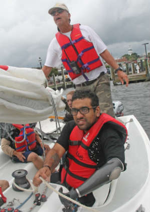The impact the NSHOF has on the sailing community goes far beyond sheer numbers. This reporter recalls sailing with triple amputee Luis Ruiz in a Wounded Warrior event hosted by Chesapeake Region Accessible Boating (CRAB) and NSHOF. Ruiz’s eyes filled with tears as he handled the jib sheet successfully, as the specially-outfitted Freedom 20 came about. That maneuver cost him his campaign cap… something he’d had since that fateful day in Afghanistan when he lost his limbs. But the smile that creased his face left no doubt that his day on the Bay was a life-changing event in its own right.