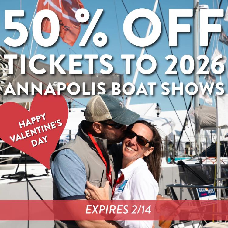 Falling in love through sailing… or powerboating, paddling, or fishing… it’s a thing! If you and your sweetheart met on the water or at a boat show, tell us your story for a chance to win two free tickets to the 2026 Annapolis Spring Sailboat Show (April 24-26). The contest runs from Monday, February 9 through February 14 at 11:59 p.m.