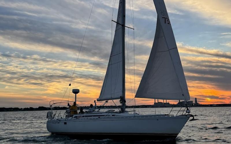 Wind was light to barely there by the end -- a downwind/by-the-lee leg at 3ish knots is not our ideal leg; we finished 6th of 8.