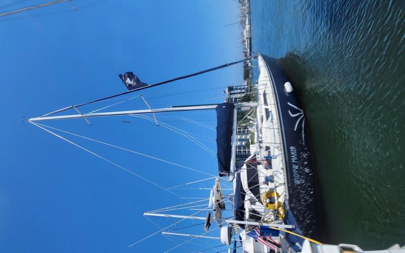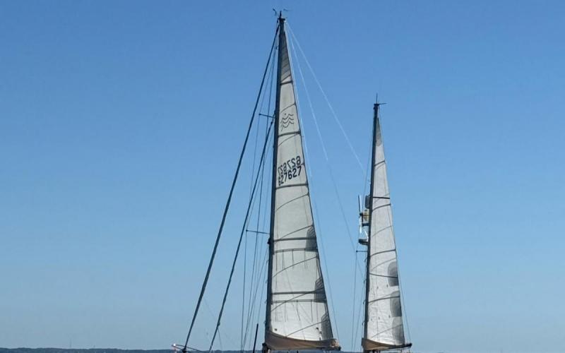 Hot and Light air, wind died at the start, under 6 knots, was parked for a while until a wind line arrived. Mizzen staysail up for a while. Course shortened to NN, TLEd anyway. Good effort from RC.