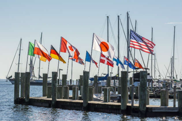 Grosvenor originally posted the AP flag first thing in the morning, announcing a two-hour postponement. That flag came down around 11 and the race committee sent the fleet out for a planned 1 p.m. start. However, a signal boat that blazed out to the racing area in advance reported becalmed conditions and the boats wound up remaining at Severn Sailing Association for another couple hours.