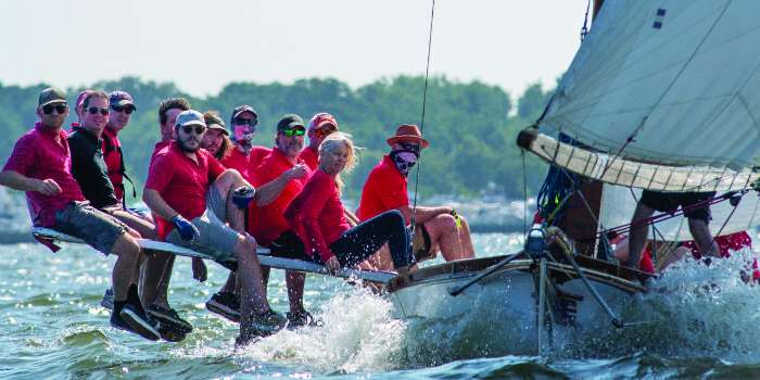 The final race of the season, Chesapeake Bay Maritime Museum’s Bartlett Cup, revived another 19th-century log canoe racing quirk: the standing start. Canoes lined up to the Miles River Yacht Club bulkhead, sails down, bows anchored out, and sterns tied to—with starts staggered by handicap rating. In this season finale, which is not counted toward the High Point, Mystery took the honors, winning the punch bowl for the first time since 1975.