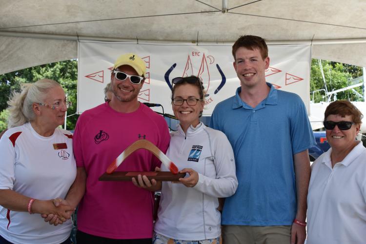 Competitors would have hoped for more wind and less current for the start of the fourth annual Eastport Yacht Club Boomerang race… but then (thank you wind gods), the 10- to 12-knot southerly kicked in and made for a pleasant overnight race for 67 competing boats. As one winner commented, “On hot days like this, racing in the middle of the night is the best!” Everyone who sweated it out at the afternoon awards party agreed. By the way—great party, EYC!