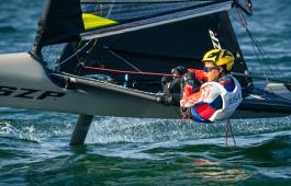 Step into a fully rigged WASZP foiling dinghy and receive three hours of professional coaching during weekly clinics at Severn Sailing Association.